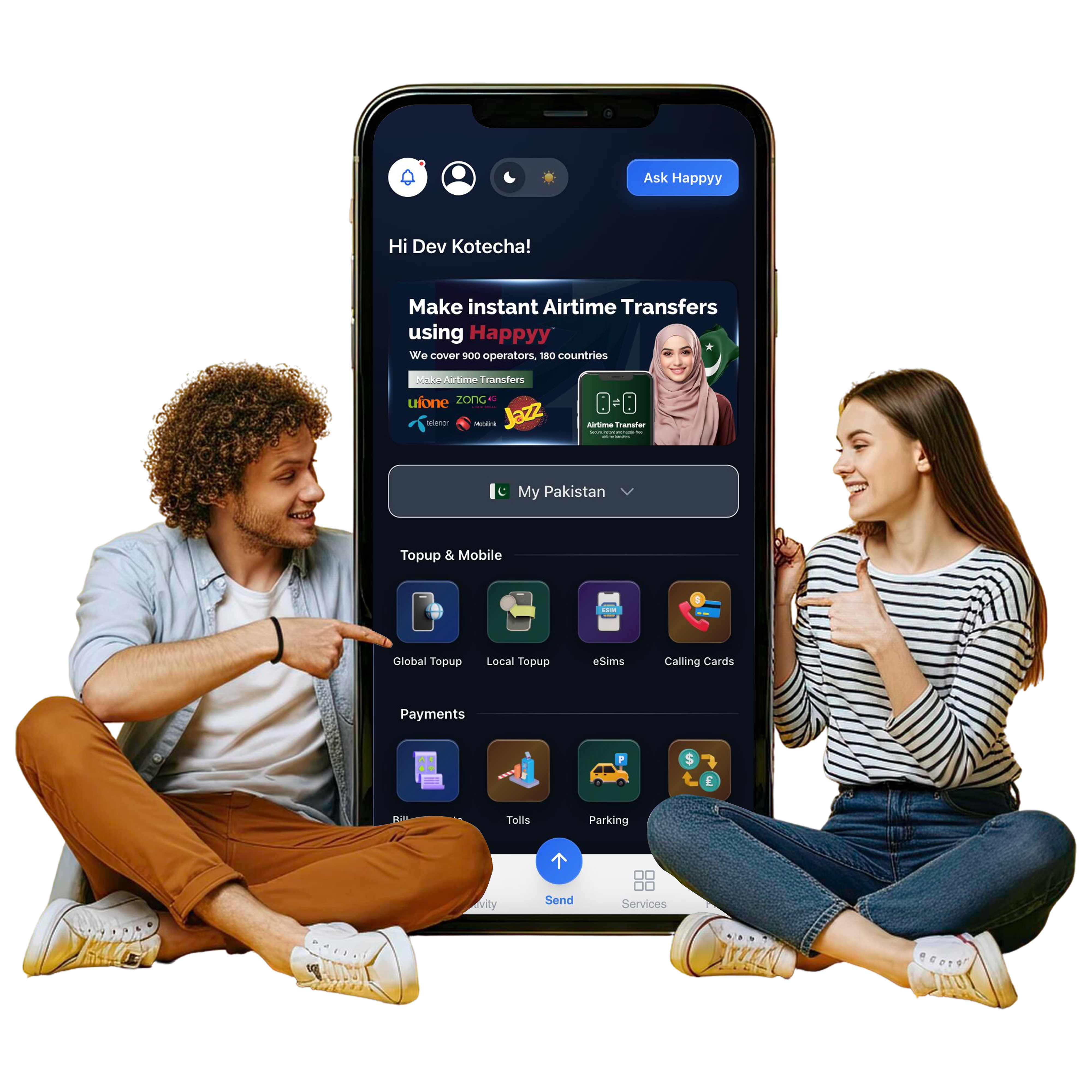 International mobile top-ups and bill payments for Pakistan, India, Philippines & more.